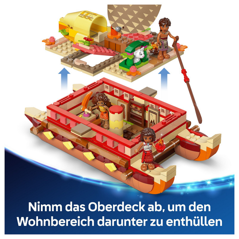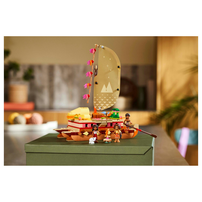 Model kit – Includes a buildable double-hulled canoe toy with a textile sail, removable deck and under-deck living area, plus 4 LEGO® ǀ Disney film characters and lots of details