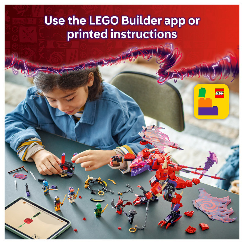 Sets and buildable action toys in the LEGO NINJAGO range (sold separately) include mechs, dragons, vehicles and temples so fans can role-play good vs. evil action. Each ninja playset can be created with the LEGO Builder app, which guides you and your child on an easy and intuitive building adventure.