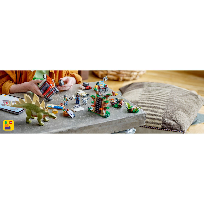 Creative adventure toy – Features a moulded LEGO® Stegosaurus with movable legs, a small Velociraptor figure and Ben and Sammy minifigures to spark role play and stories