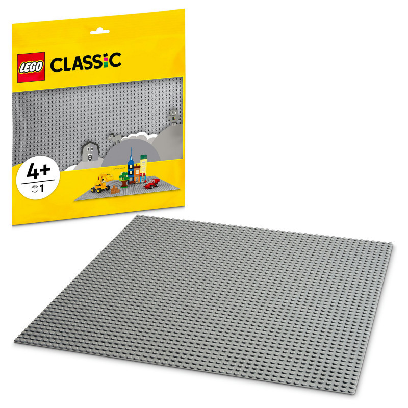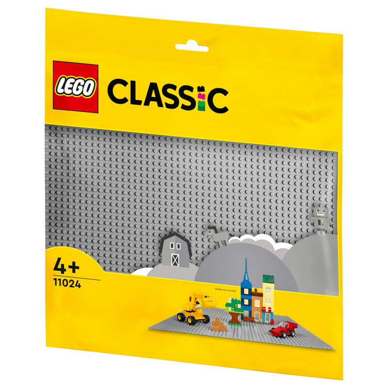 "LEGO Classic Grey Baseplate. Product type: Building set, Recommended age (min): 4 yr(s), Material: Plastic, Number of pieces: 1 pc(s). Package weight: 242 g"\n"Lay the foundations for open-ended creative play with the LEGO® Classic Grey Baseplate (11024). Measuring over 14.5 in. (38cm) square, this high-quality building toy gives kids a spacious 48x48-stud LEGO landscape on which to build, play and display.
