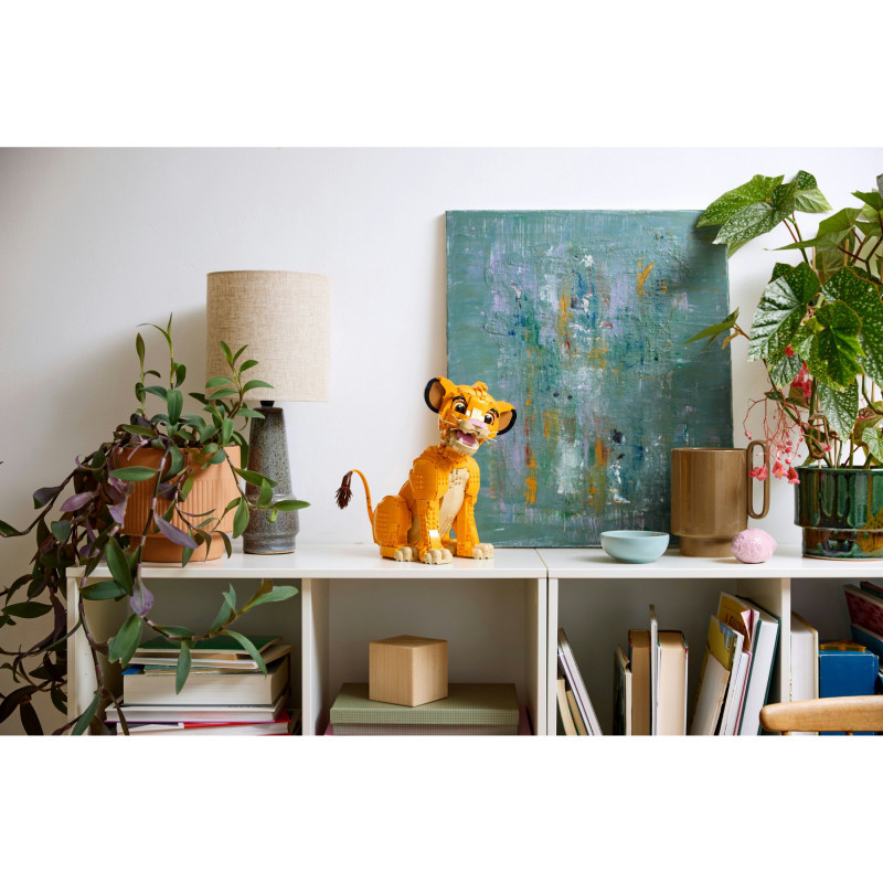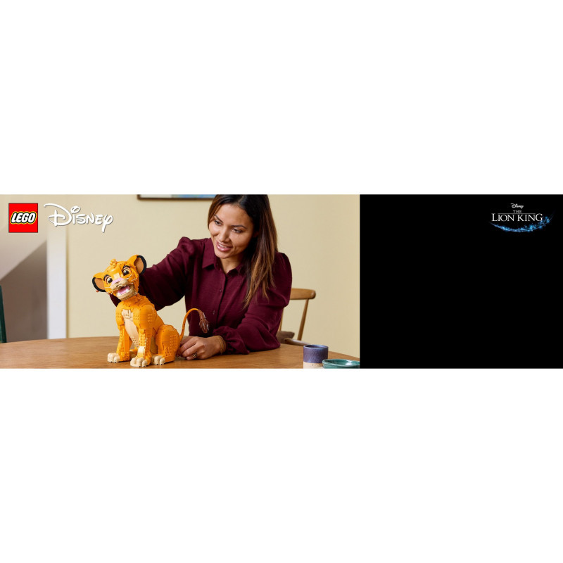 "LEGO Young Simba the Lion King. Product type: Building set, Recommended age (min): 18 yr(s), Material: Plastic, Number of pieces: 1445 pc(s). Package weight: 2.18 kg"\n"Share a passion for iconic films with this Young Simba the Lion King (43247) LEGO® ǀ Disney animal building set. This building kit for adults celebrates The Lion King’s 30th anniversary and features a Simba animal figure with a movable head so the model can be displayed in different poses. This relaxing activity for adults is a fun, nostalgic gift that employs advanced building techniques and fosters a sense of creative joy as you click the last piece into place and set Simba up on display.