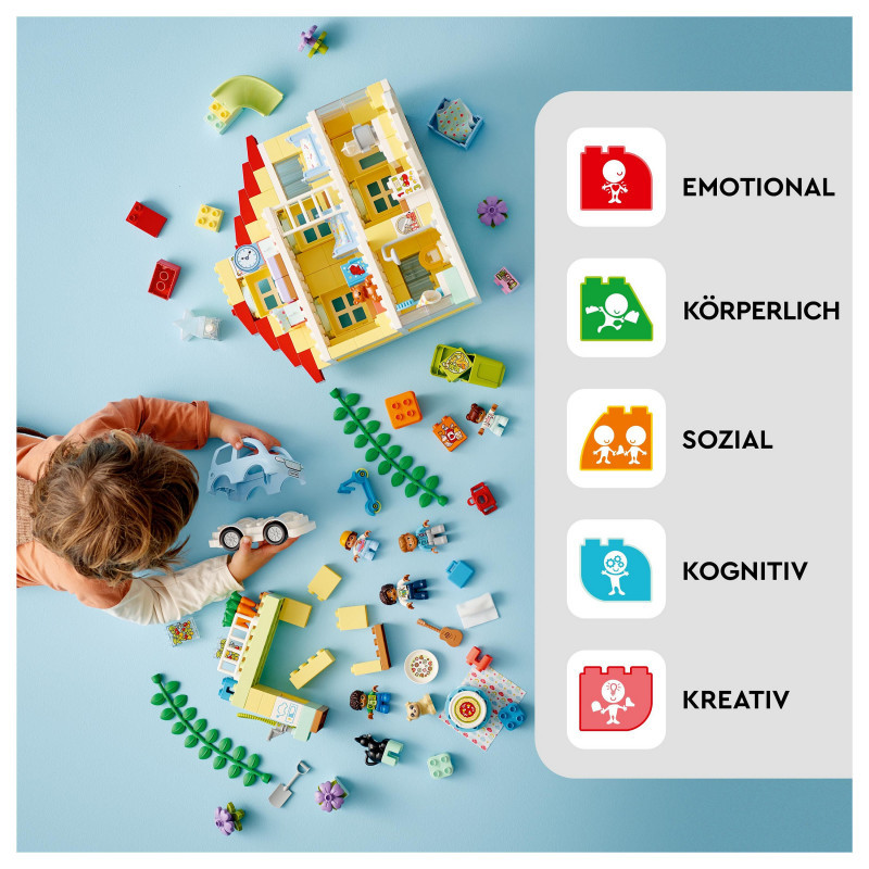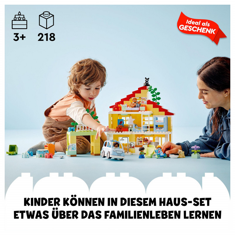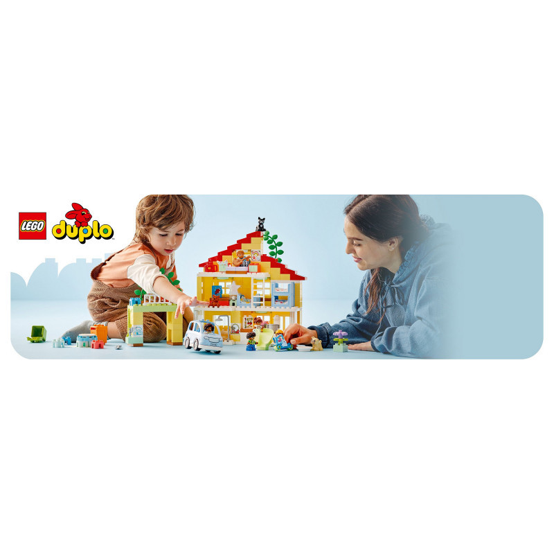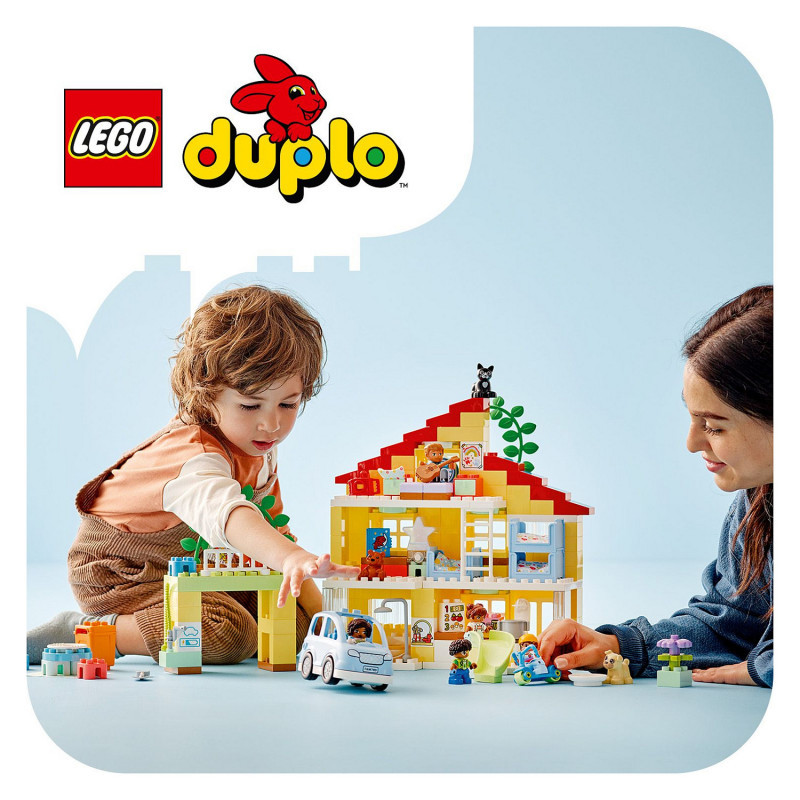 "LEGO DUPLO 3in1 Family House. Product type: Building set, Recommended age (min): 3 yr(s), Material: Plastic, Number of pieces: 218 pc(s). Package weight: 3.45 kg"\n"Welcome to the LEGO® DUPLO® Town 3in1 Family House (10994) toy, where a world of kids’ learning awaits. Packed with authentic details, this house lets toddlers aged 2+ and parents play out precious family moments. With 7 figures included, parents can enjoy teaching social skills while kids explore their own self-expression.