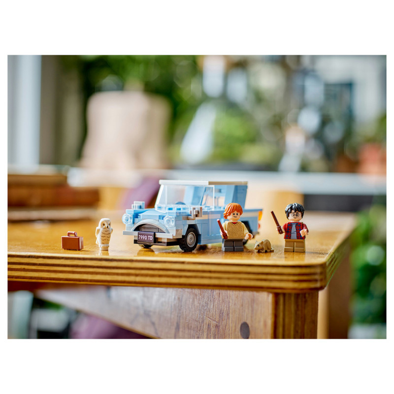 "LEGO Harry Potter Flying Ford Anglia™. Product type: Building set, Recommended age (min): 7 yr(s), Material: Plastic, Number of pieces: 165 pc(s). Package weight: 227 g"\n"Recreate Harry Potter™ and Ron Weasley’s thrilling journey to Hogwarts™ in the Flying Ford Anglia™ (76424) car with this fantasy toy playset for kids aged 7+. The LEGO® brick-built adventure toy car features opening doors and a removable roof so it’s easy to place the Harry Potter and Ron Weasley™ minifigures and Hedwig™ owl figure inside. There is also space in the boot for the suitcase, Harry and Ron’s wands and Ron’s pet rat, Scabbers™.