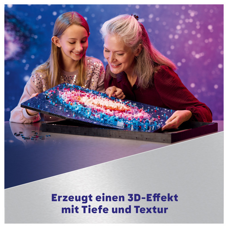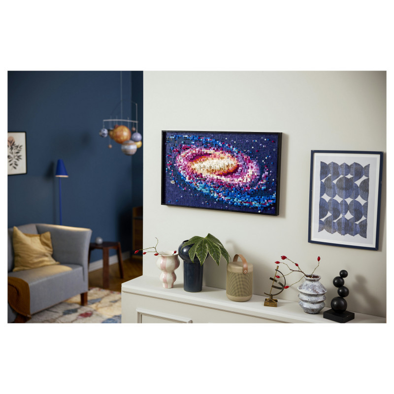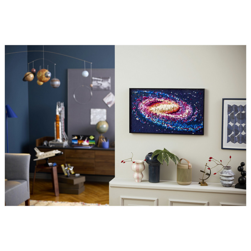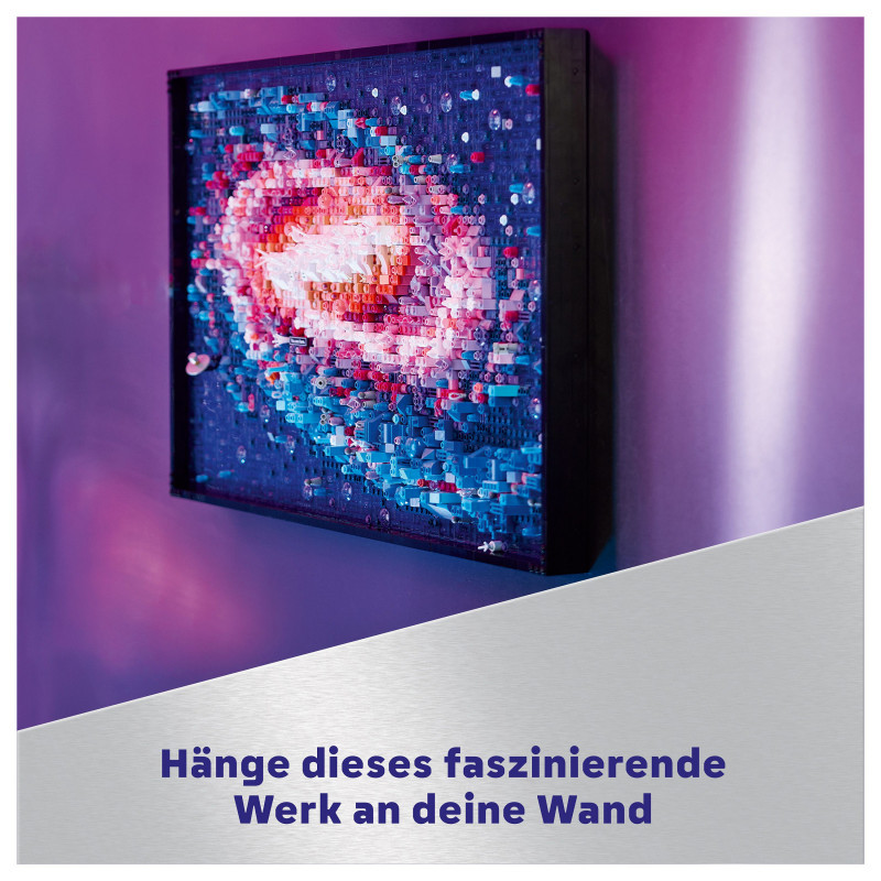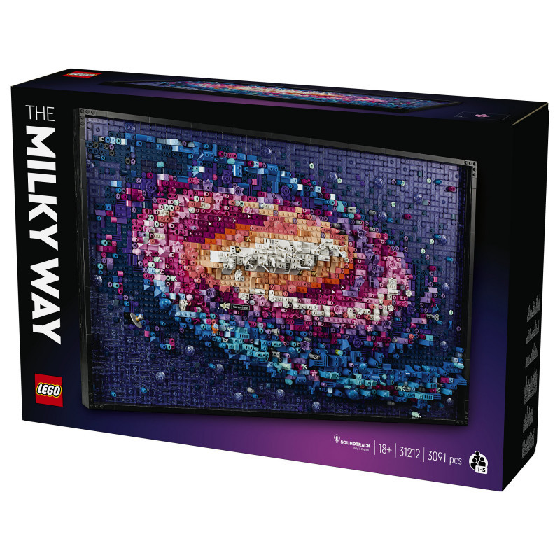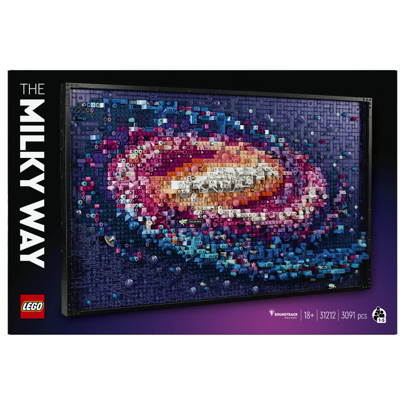 "LEGO ART The Milky Way Galaxy. Product type: Building set, Recommended age (min): 18 yr(s), Material: Plastic, Number of pieces: 3091 pc(s). Package weight: 3.86 kg"\n"Bring to life the vast beauty of The Milky Way Galaxy (31212) with this incredible LEGO® wall art building kit for adults. It makes the ideal home decor gift idea and lets builders immerse themselves in a creative activity before they use the hanger element to display it.