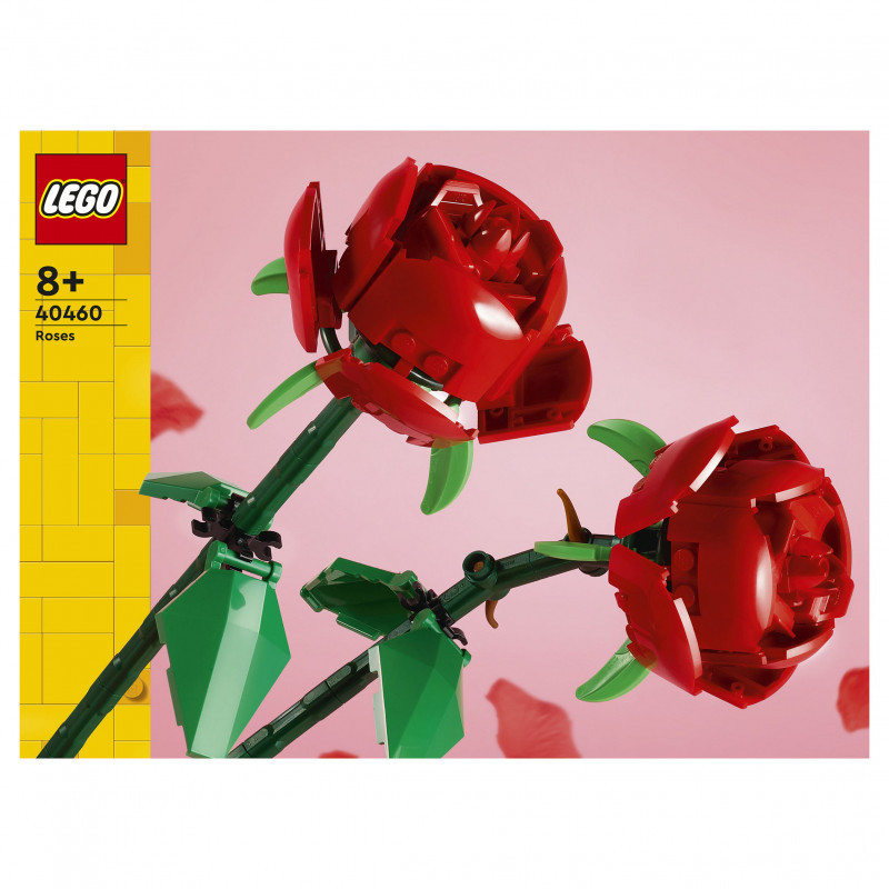 "LEGO Botanicals Roses. Product type: Building set, Recommended age (min): 8 yr(s), Material: Plastic, Number of pieces: 120 pc(s). Package weight: 161 g"\n"Mark a special occasion with these LEGO® Roses (40460). They’re the perfect gift for Valentine’s Day, Mother’s Day or just to let someone know how much they’re cherished – and they’ll bring a beautiful burst of colour when displayed in a vase. This easy-to-assemble set comes with 2 red blooms, green leaves and length-adjustable stems. Combine with LEGO Tulips (40461) to add extra colour to this brick-built bouquet. The set is also compatible with the LEGO Flower Bouquet (10280).