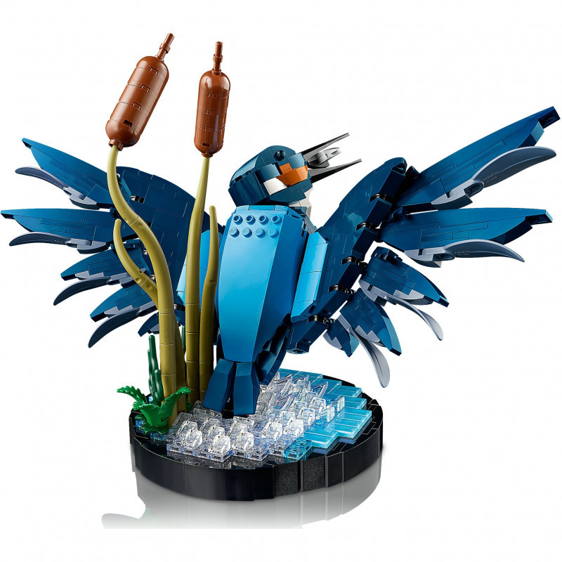 Features and functions – The model kingfisher comes with a posable head and claws, and the water setting with buildable reeds doubles as a display stand