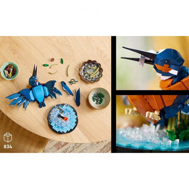 "LEGO ICONS Kingfisher Bird. Product type: Building set, Recommended age (min): 18 yr(s), Material: Plastic, Number of pieces: 834 pc(s). Package weight: 820 g"\n"Create a striking centrepiece for your home or office with this home decor building set for adults. This LEGO® Icons Kingfisher Bird set (10331) makes a great gift for bird-lovers and an immersive project for new and accomplished LEGO builders.