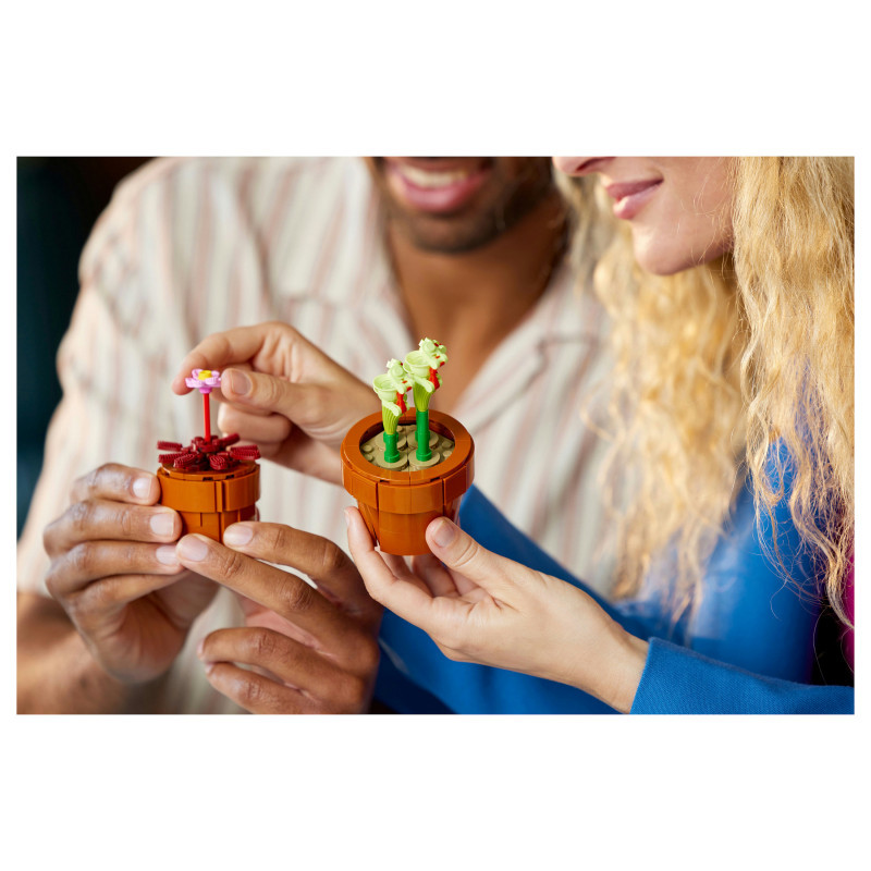 "LEGO Botanicals Tiny Plants. Product type: Building set, Recommended age (min): 18 yr(s), Material: Plastic, Number of pieces: 758 pc(s). Package weight: 707 g"\n"Create an elegant, zero-maintenance floral display with this home decor building set for adults. The LEGO® Botanicals Tiny Plants (10329) building project features flora based on arid, tropical and carnivorous species, each nestled in a buildable, terracotta-coloured container. Enjoy time out crafting each of the 9 plants before displaying them in your home or office.
