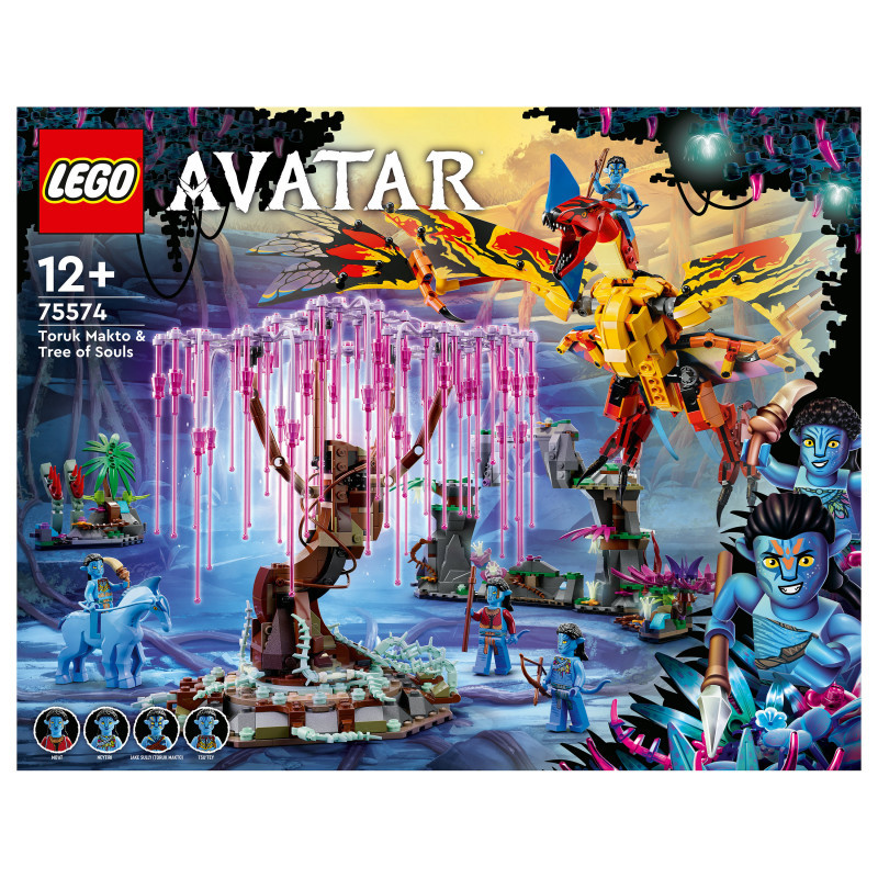 "LEGO Avatar Toruk Makto & Tree of Souls. Product type: Building set, Recommended age (min): 12 yr(s), Material: Plastic, Number of pieces: 1212 pc(s). Package weight: 1.72 kg"\n"Capture the imagination of kids aged 12+, plus fans of science fiction, fantasy and animals, with this LEGO® Avatar Toruk Makto & Tree of Souls (75574) building toy set. It includes Jake Sully, Neytiri, Mo’at and Tsu’Tey Na’vi minifigures, a posable Toruk figure with foil wings, Direhorse figure and a buildable Tree of Souls, plus 3 environment builds with glow-in-the-dark elements.