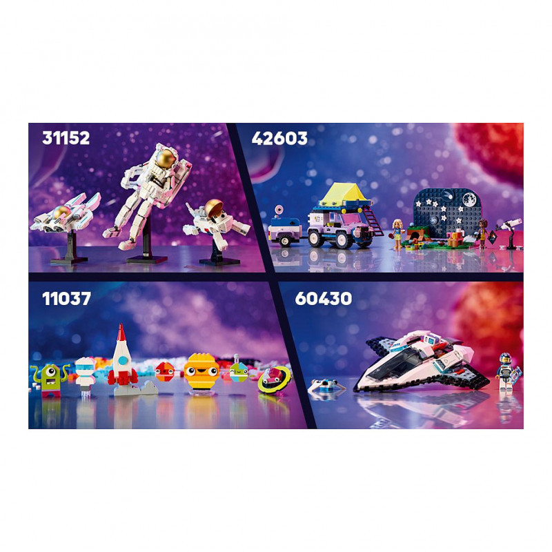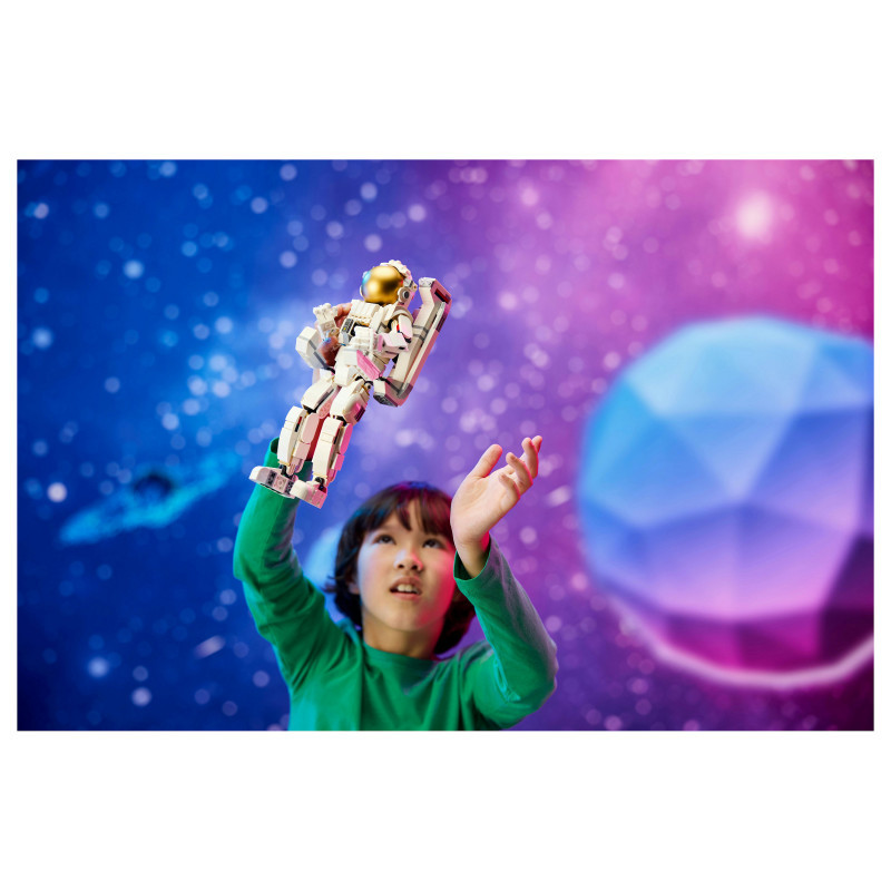 "LEGO Creator Space Astronaut. Product type: Building set, Recommended age (min): 9 yr(s), Material: Plastic, Number of pieces: 647 pc(s). Package weight: 942 g"\n"LEGO® fans aged 9+ can blast into space to explore new planets by recreating space adventures with this LEGO Creator Space Astronaut (31152) building toy. The astronaut figure includes a detachable jet propulsion backpack, posable legs, feet, arms and fingers and a golden opening visor with a seat inside for a minifigure (not included).