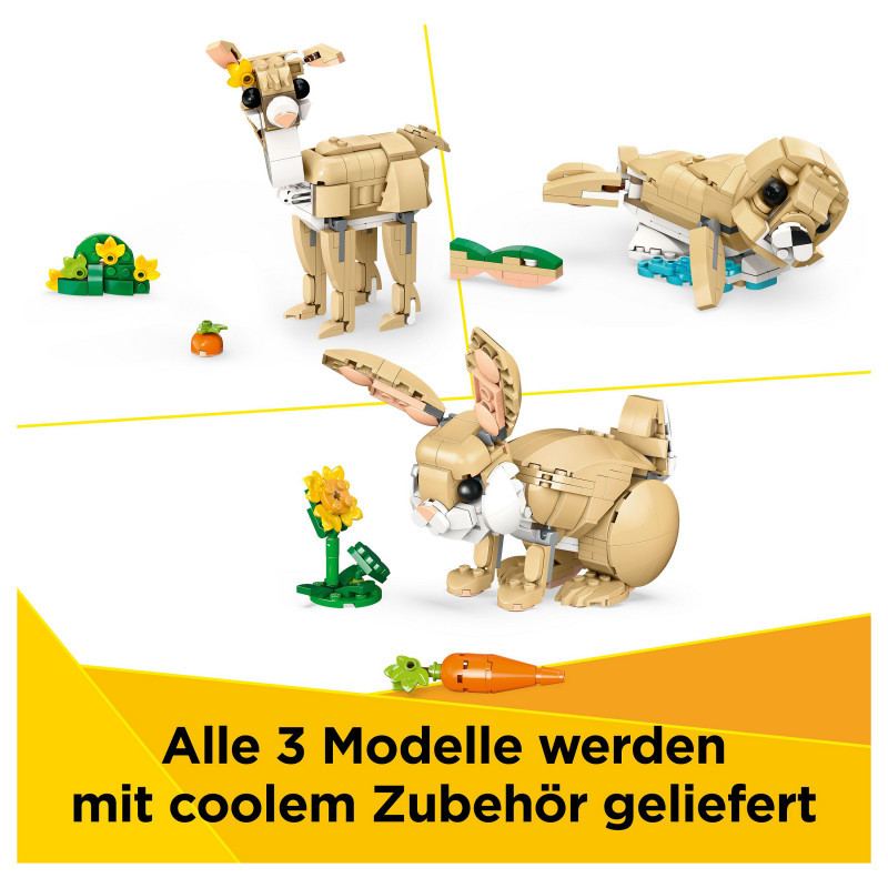 3 rebuildable animal playsets for kids in 1 box – LEGO® Creator Cute Bunny lets girls and boys aged 8 and over build and rebuild 3 different animal figures using the same bricks