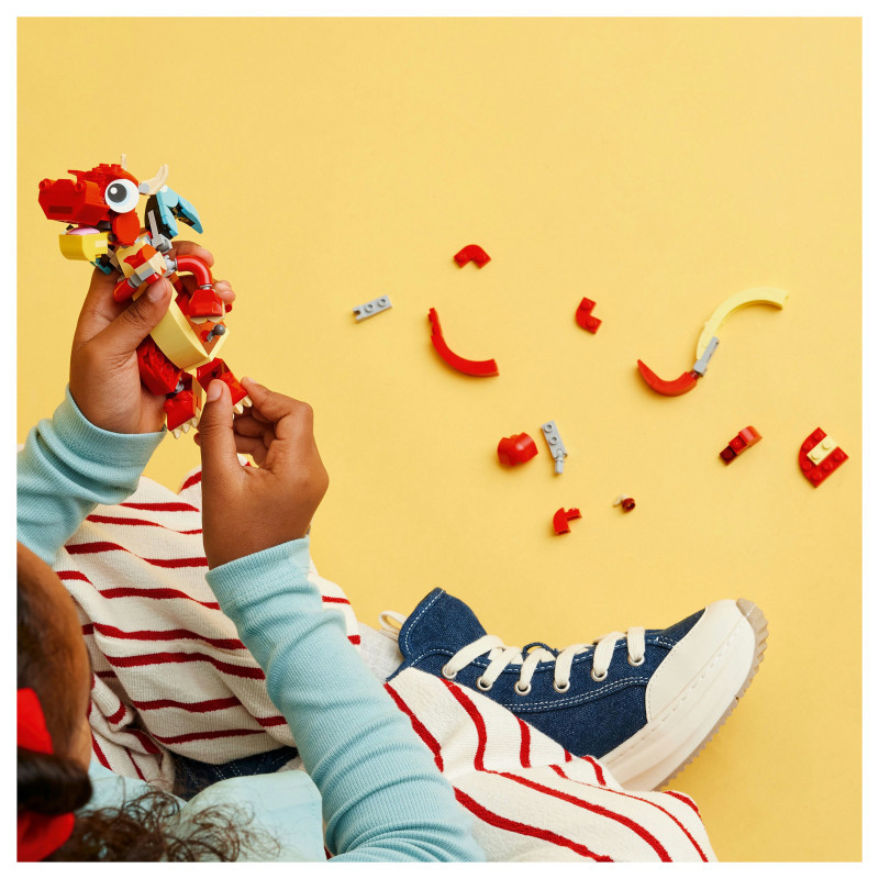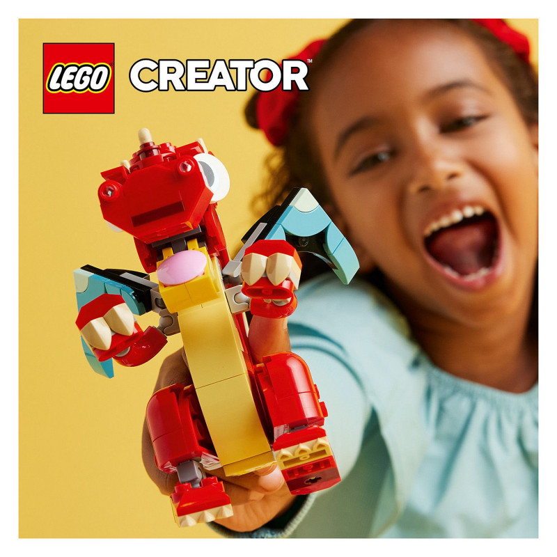 Build and play – This 149-piece LEGO® building set features a buildable red dragon toy standing over 12 cm (4.5 in.) high"
