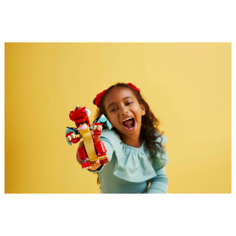 3 magical animal toys in 1 set – Boys and girls aged 6+ can build and rebuild 3 different colourful models with the same set of bricks in this LEGO® Creator Red Dragon toy set