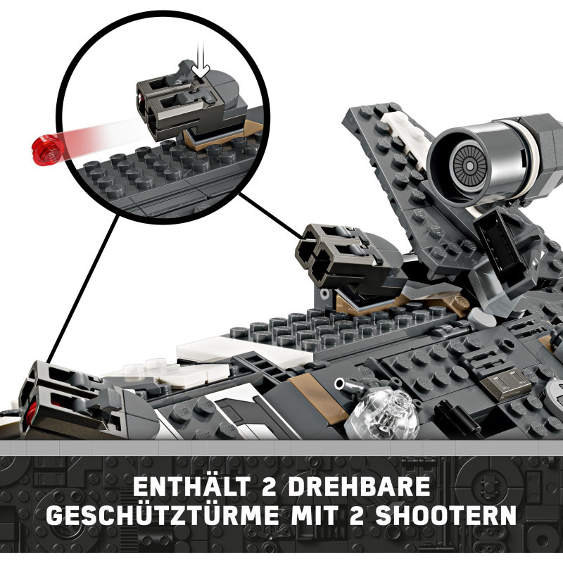 Authentic features – A cockpit, compartment with seats for 4 LEGO® minifigures, rotating engines for landing/takeoff or flight, 2 stud shooters and 2 rotating turrets, each with 2 stud shooters