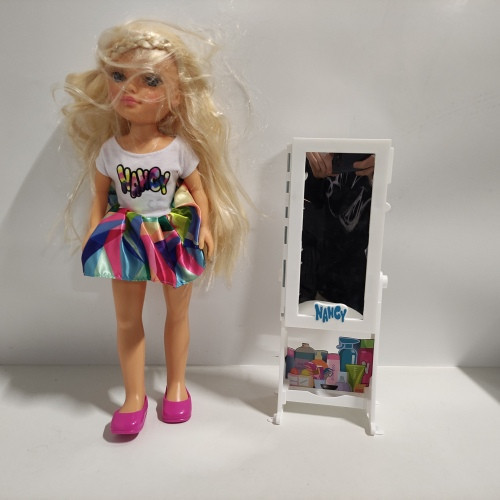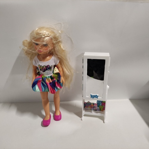 Ecost prekė po grąžinimo, Famosa 700015131 Nancy Mirror 1001 kirpimo manekenas su spinta, veidrodžiu ir kirpyklų aksesuarais vaikams ir mergaitėms nuo 3 metų įvairiaspalvis