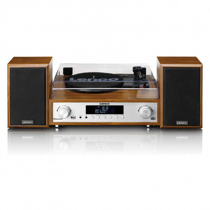 "Lenco MC-160WD. Type: Belt-drive audio turntable, Operation: Manual, Product colour: Wood. USB connector type: USB Type-A, Bluetooth range: 10 m, Headphone connectivity: 3.5 mm. Display type: LCD. RMS rated power: 10 W. Power supply type: DC, AC adapter input voltage: 100 - 240 V, AC adapter frequency: 50/60 Hz"\n