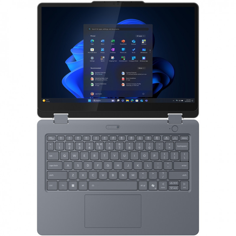"Lenovo 13w 2-in-1 Gen 3. Product type: Hybrid (2-in-1), Form factor: Convertible (Folder). Processor family: Intel Core 5, Processor model: 120U, Processor frequency: 1.4 GHz. Display diagonal: 33.8 cm (13.3""), HD type: WUXGA, Display resolution: 1920 x 1200 pixels, Touchscreen. Internal memory: 16 GB, Internal memory type: DDR5-SDRAM. Total storage capacity: 512 GB, Storage media: SSD. Operating system installed: Windows 11 Pro. Product colour: Grey"\n