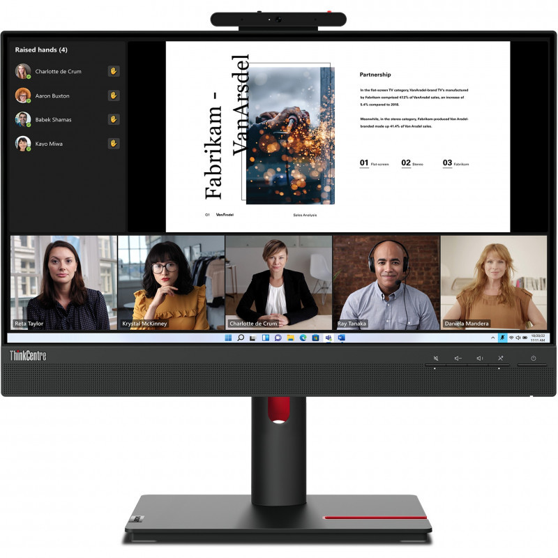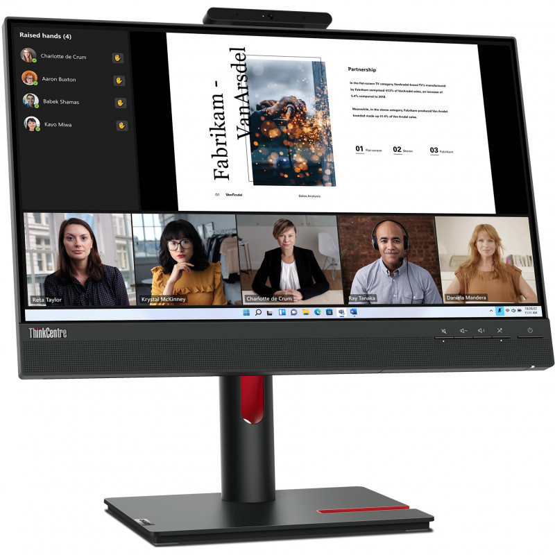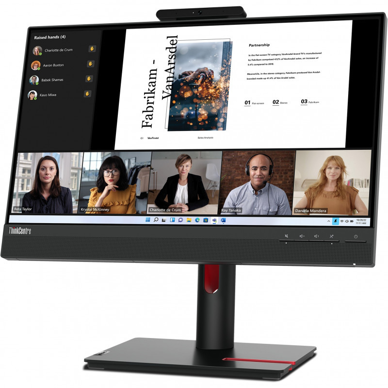 a consistent experience, allowing you to easily and quickly mount last-gen Tiny PCs on the monitor. Designed to be a powerful VoIP machine, this monitor is enhanced with features that make video conferencing a great experience. During online meetings, the 1080p RGB webcam and integrated noise-cancellation microphone produce exceptionally clear audio and video. TIO 22 Gen 5 also has a Smart Traffic Light indicator that alerts everyone in the vicinity to an ongoing meeting, letting you remain focused. If remaining focused and staying in the conversation is of importance to you, then