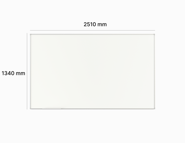 Projekcijos ir sauso valymo rašymo lenta. Aukštos kokybės keraminė plieno plokštė, mažai blizgus paviršius, aliuminio rėmas. Lentos dydis – 2510 x1340mm. Naudojamas plotas 2482 x 1190 mm su specialia juosta viršuje projektoriaus tvirtinimui, kad jis kokybiškai veiktų.