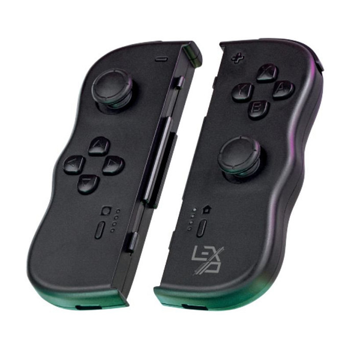 "Lexip Adventure Twinpads Black (Switch). Device type: Gamepad, Gaming platforms supported: Nintendo Switch, Nintendo Switch OLED, Gaming control function buttons: Capture button, D-pad, Home button. Connectivity technology: Wireless, Device interface: Bluetooth, Wireless range: 8 m. Product colour: Black, Cable length: 1.5 m. Power source: Battery, Battery capacity: 300 mAh, Battery life (max): 8 h. Weight: 85 g"\n"TwinPads let you play the Nintendo Switch console.