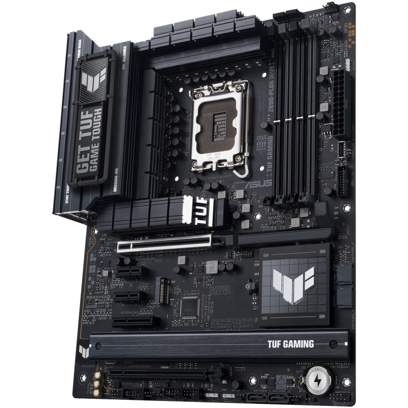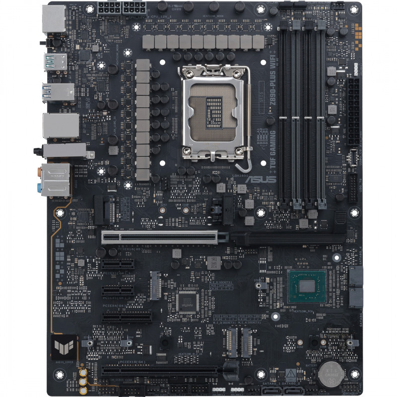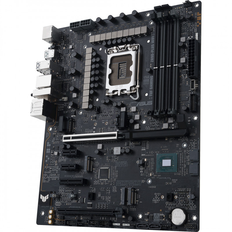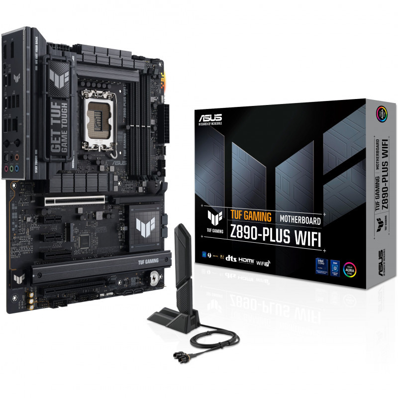 "ASUS TUF GAMING Z890-PLUS WIFI. Processor manufacturer: Intel, Processor socket: LGA 1851 (Socket V1), Compatible processor series: Intel Core Ultra (Series 2). Supported memory types: DDR5-SDRAM, Maximum internal memory: 192 GB, Memory slots type: DIMM. Supported storage drive interfaces: M.2, SATA III, Supported storage drive types: HDD & SSD, RAID levels: 0, 1, 5, 10. Ethernet interface type: 2.5 Gigabit Ethernet, Top Wi-Fi standard: Wi-Fi 7 (802.11be), Wi-Fi standards: 802.11a, 802.11b, 802.11g, Wi-Fi 4 (802.11n), Wi-Fi 5 (802.11ac), Wi-Fi 6 (802.11ax), Wi-Fi 6E.... Component for: PC, Motherboard form factor: ATX, Motherboard chipset family: Intel"\n"ASUS TUF GAMING Z890-PLUS WIFI takes all the essential elements of the latest Intel® Core™ Ultra Processors (Series 2) processors and combines them with game-ready features and proven durability. Engineered with military-grade components, an upgraded power solution and a comprehensive cooling system, this motherboard goes beyond expectations with rock-solid and stable performance for marathon gaming. TUF GAMING motherboards also undergo rigorous endurance testing to ensure that they can handle conditions where others may fail. This platform delivers the power and connectivity that advanced AI PC applications demand.