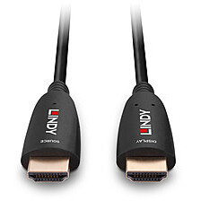 "Lindy 10m Fibre Optic Hybrid HDMI 8K60 Cable. Cable length: 10 m, Connector 1: HDMI Type A (Standard), Connector 1 gender: Male, Connector 2: HDMI Type A (Standard), Connector 2 gender: Male, Connector contacts plating: Gold, HDMI version: 2.1, Data transfer rate: 48 Gbit/s, Product colour: Black"\n"Lindy's range of Fibre Optic Hybrid cables are a professional solution for extending HDMI signals over longer distances. Combining the flexibility and high EMI and RFI resistance of fibre optic cable with standard copper cabling, these hybrid cables are ideal for use in critical AV setups, commercial displays or high-performance residential installations.