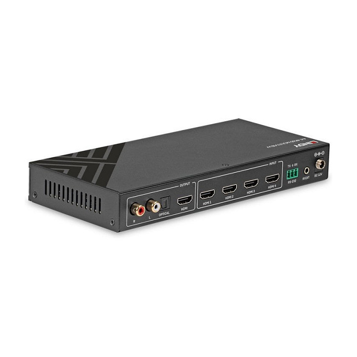 "Lindy 4x1 4K60 HDMI Seamless Multiview Switch. Video port type: HDMI. Material: Metal, Product colour: Black, Maximum refresh rate: 60 Hz. AC input voltage: 12 V, AC adapter input voltage: 2.5 V. Width: 219 mm, Depth: 111 mm, Height: 30 mm. Package width: 280 mm, Package depth: 179 mm, Package height: 78 mm"\n"This HDMI® 4x1 Multi-View Switch is a high-performance video switch designed for 4K displays, enabling signals from up to four different Ultra HD sources to be seamlessly integrated for simultaneous display on a single monitor. With four distinct viewing modes (Quad-View, Full Screen, Picture in Picture, and Dual Video), this Multi-View switch accommodates the monitoring of multiple video sources in various configurations supporting Ultra HD 4K resolutions on both input and output.