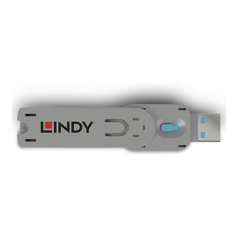 "Lindy USB Type A Port Blocker Key, Blue. Product type: Port blocker key, Compatible ports/slots: USB Type-A, Product colour: Blue. Width: 18 mm, Depth: 75.2 mm, Height: 12 mm"\n"USB Port Blockers are useful little devices that system administrators can use to physically prevent access to USB ports. USB Port Blockers allow locks to be inserted and removed from USB ports to stop unauthorised users from inserting pen drives, USB mass storage and mobile devices into shared workstations or devices with USB ports in public spaces.