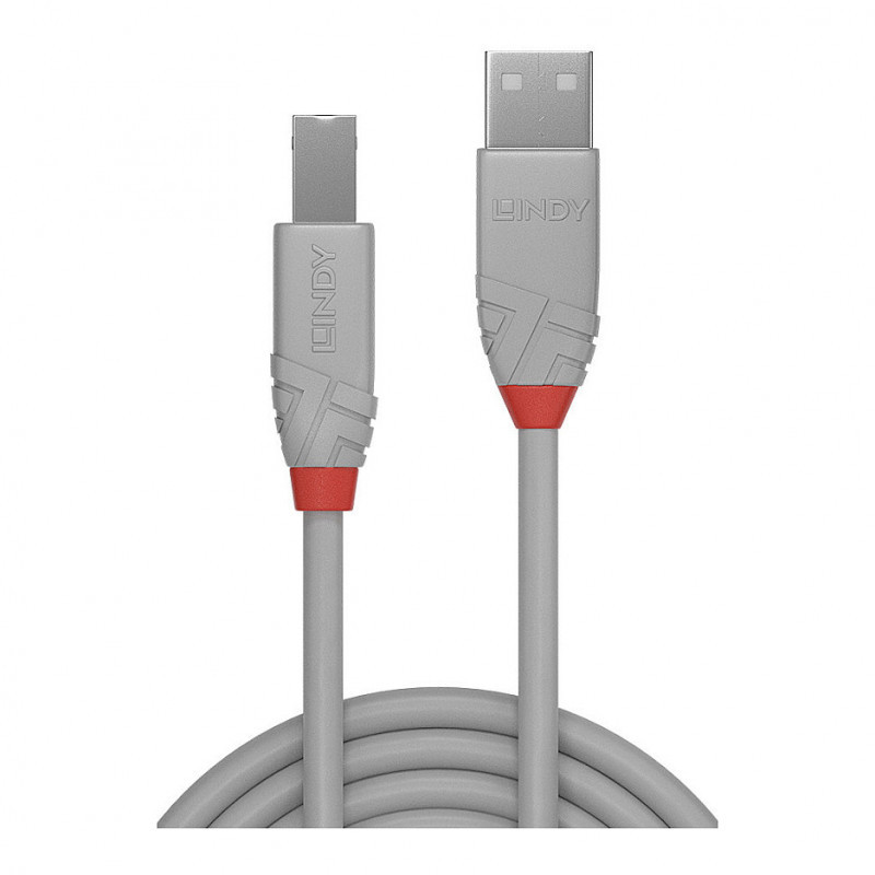 "Lindy 1m USB 2.0 Type A to B Cable, Anthra Line, Grey. Cable length: 1 m. Connector 1: USB A, Connector 2: USB B, USB version: USB 2.0, Maximum data transfer rate: 0.48 Gbit/s, Connector contacts plating: Gold, Product colour: Grey"\n"From the Lines cable connectivity concept developed by Lindy, Anthra Line USB 2.0 Type A to B, grey, cables are the professional choice for high performance connections in commercial AV and IT installations.