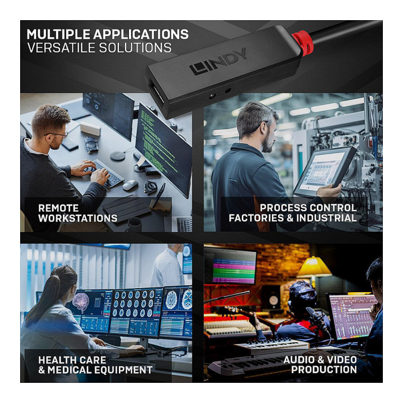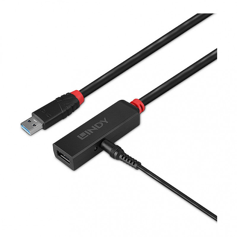 The Lindy USB 3.0 Active Extension Slim is supplied with power via the USB bus, but also has a DC socket for connecting a power supply unit for devices with high power requirements or if you want to connect several cables in series.