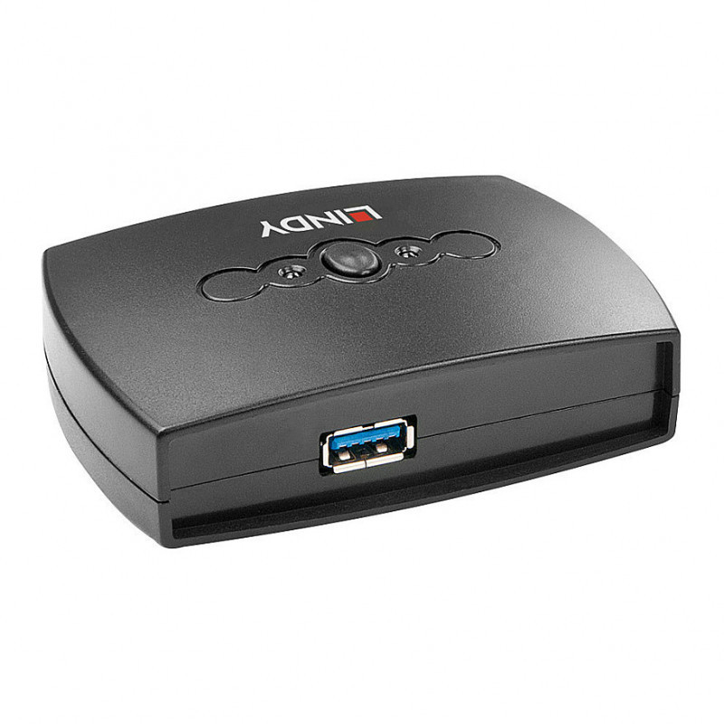 "Lindy 2 Port USB 3.0 Switch"\n"The Lindy 2 Port USB 3.0 Switch allows up to 2 users to share a USB 3.0 peripheral without the need to repeatedly swap cables or set up complicated network sharing software.