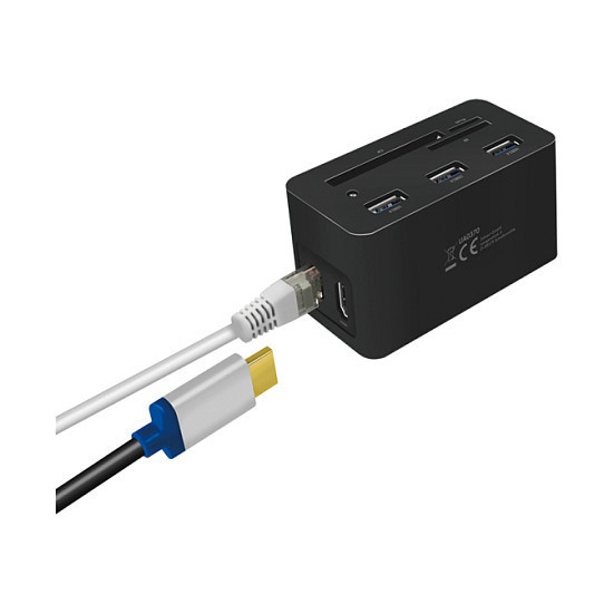 The UA0370 from LogiLink connects a USB-C enabled computer with up to 10 peripheral ports via one cable. The special USB-C-PD port ensures that your laptop is charged while simultaneously supplying power to any external device. The RJ45 Gigabit Ethernet network port ensures stable and fast network transmission. You can also enjoy Ultra-HD-4K resolutions up to 3840x2160 with an HDTV monitor or projector."