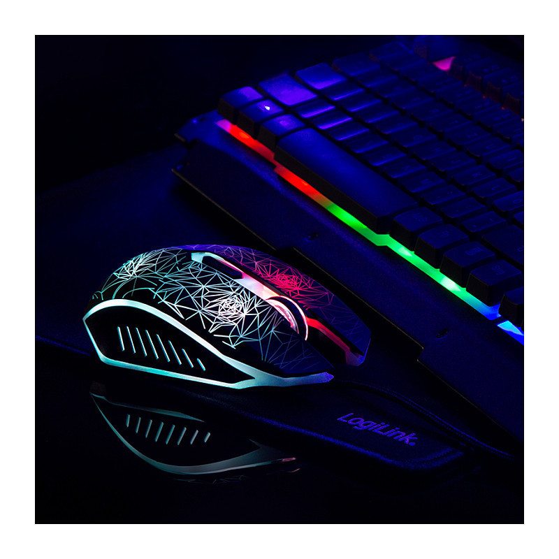 LogiLink's wired gaming keyboard, mouse and mouse pad combination consists of a mechanical keyboard, a 5-button optical mouse and a large gaming mouse pad.