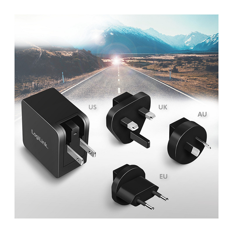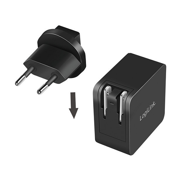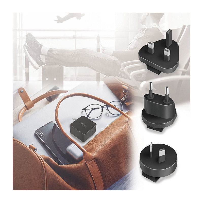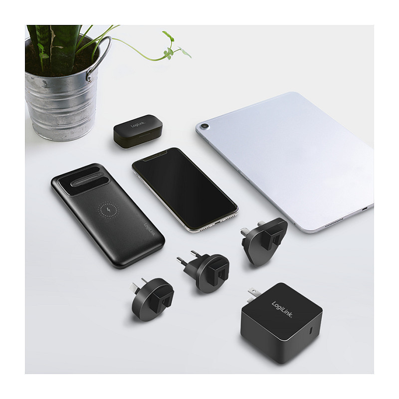 "LogiLink PA0302. Charger type: Indoor, Power source type: AC, Charger compatibility: Universal. Input voltage: 100 - 240 V, Maximum output voltage: 20 V, AC adapter output current: 3.25 A. USB Type-C ports quantity: 1, Fast charging, Power protection features: Over current, Over voltage, Overheating, Short circuit. Product colour: Black"\n"""USB socket travel adapter, GaN, 1x USB-C, 65 W, black"" from LogiLink