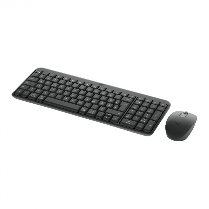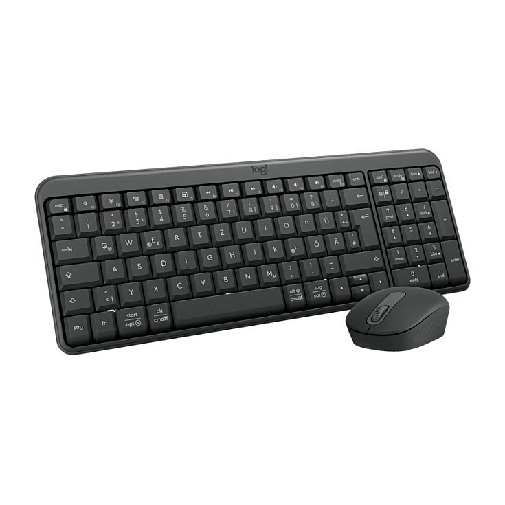 "Logitech MK250 Compact Bluetooth Wireless Combo. Keyboard style: Straight. Connectivity technology: Wireless, Device interface: RF Wireless + Bluetooth, Keyboard layout: QWERTZ, Recommended usage: Universal. Product colour: Graphite. Mouse included"\n"Connect easy with MK250, a combo that’s simple, full-featured, wireless, and made to last with plastic parts using a minimum of 64% recycled materials.