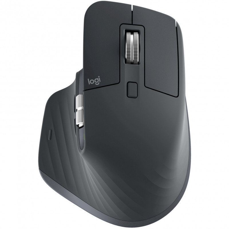"Logitech MX Master 3S. Form factor: Right-hand. Device interface: RF Wireless + Bluetooth, Movement resolution: 8000 DPI, Buttons type: Pressed buttons, Buttons quantity: 7, Scroll type: Wheel. Power source: Batteries. Works on any surface. Product colour: Graphite"\n