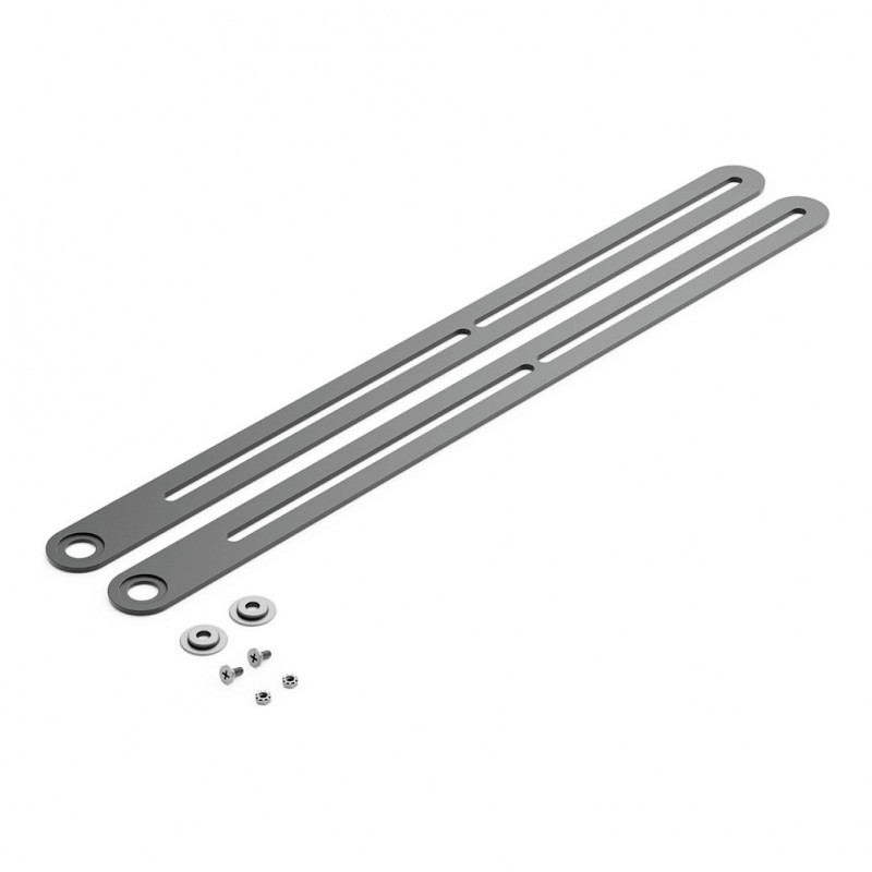 "Logitech 952-000248. Product type: Mounting kit, Product colour: Graphite, Brand compatibility: Logitech. Width: 36 mm, Depth: 3 mm, Height: 548 mm. Package width: 48.6 mm, Package depth: 581.6 mm, Package height: 26.6 mm. Packaging content: 2 Swing arms 2 Stainless steel washers 2 M4/7mm locking nuts 2 Phillips bolts 1 x 7 mm wrench"\n"Mount Rally Bar Huddle directly above or below a TV or display.