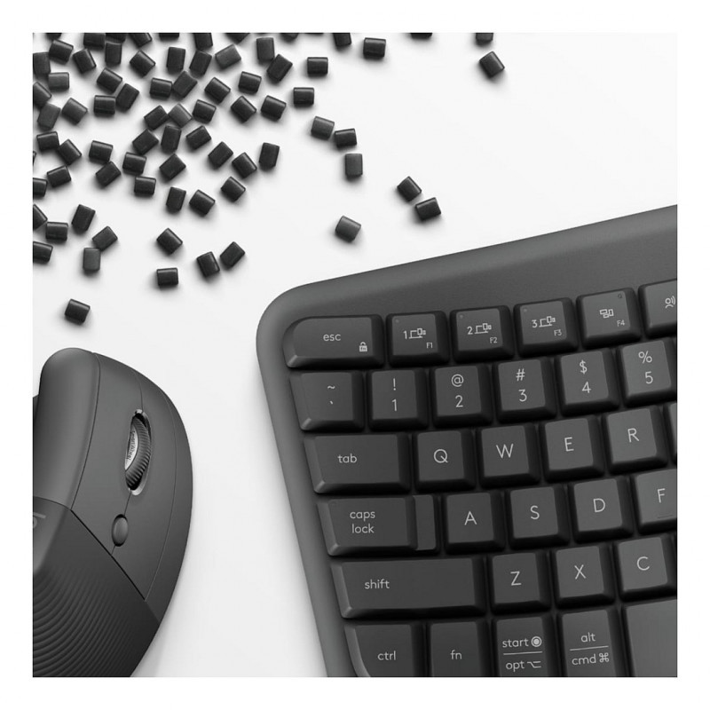 "Logitech Wave Keys and Lift Combo. Keyboard style: Curved. Connectivity technology: Wireless, Device interface: Bluetooth, Keyboard key switch: Plunger key switch, Keyboard layout: QWERTZ. Wrist rest. Recommended usage: Universal. Product colour: Graphite. Mouse included"\n"Feel the Wave, Feel the Lift