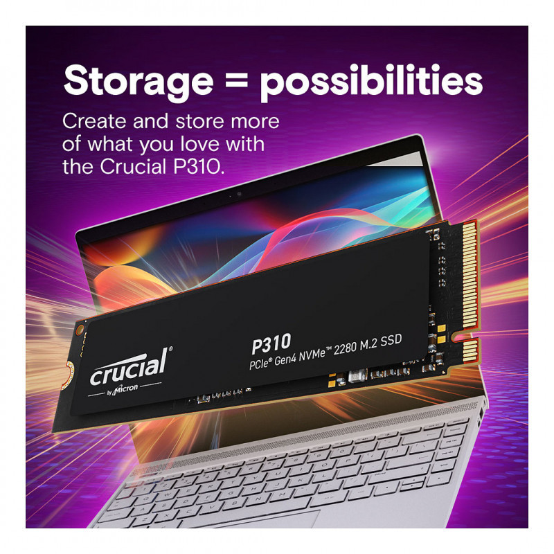 "Crucial P310. SSD capacity: 500 GB, SSD form factor: M.2, Read speed: 6600 MB/s, Write speed: 3500 MB/s, Component for: PC/Laptop"\n"Shift up to Gen4 speed