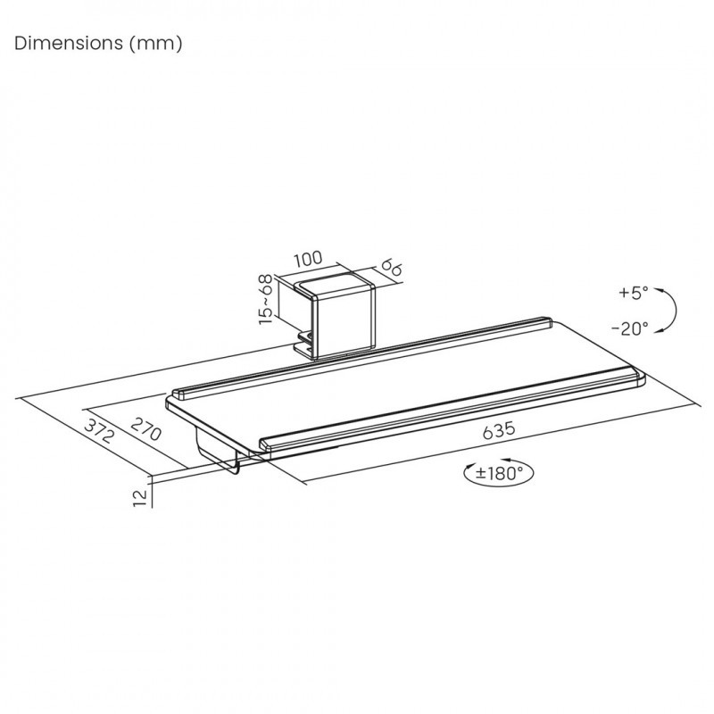Kiti priedai | Maclean klaviatūros laikiklis po stalu, maks. apkrova 5 kg, reguliuojamas horizontaliai ir vertikaliai, juodos spalvos, MC-108 B