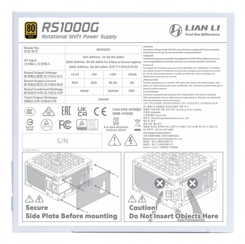Lian Li RS1000G maitinimo blokas 1000 W 20+4 pin ATX ATX Balta