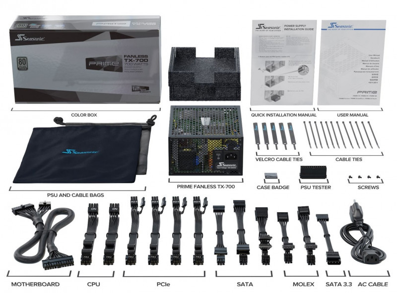 Seasonic PRIME Fanless TX maitinimo blokas 700 W 20+4 pin ATX ATX Juoda
