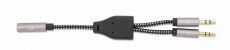 MANHATTAN Headset Adapter Cable with Stereo Audio Aux Y-Splitter, 3.5 mm Female (4pin) to 2 x 3.5 mm Male (3pin), 15cm, Splits Single Headset Plug into Microphone and Audio Plugs, CTIA, Gold-plated Contacts, Braided Nylon, Black/Silver, 356121