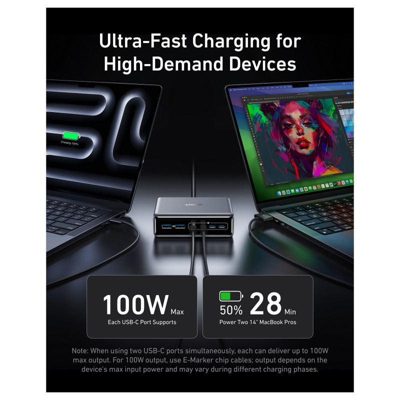 Anker Prime Charger 200W Desktop GaN 4 x USB-C 2 x USB-A black