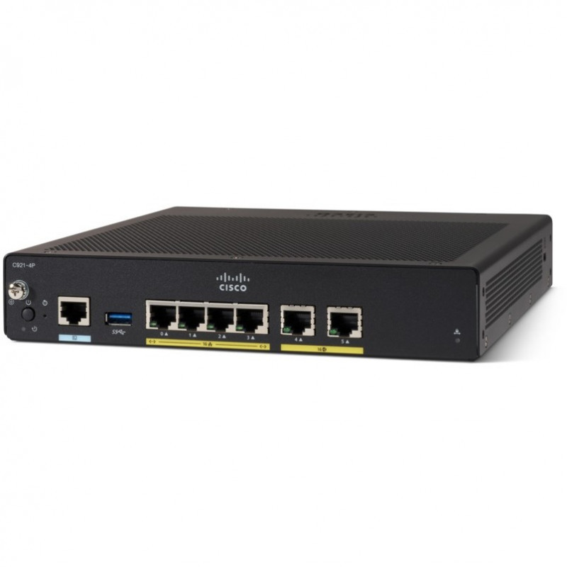"Cisco C927-4P. Networking standards: IEEE 802.1D, IEEE 802.1Q, IEEE 802.1x, Ethernet interface type: Gigabit Ethernet, Cabling technology: 10/100/1000Base-T(X). Routing protocols: BGP, EIGRP, OSPF. Security algorithms: 3DES, 128-bit AES, 192-bit AES, 256-bit AES, DES, SSL/TLS. Flash memory: 2048 MB, Internal memory: 1024 MB, Internal memory type: DRAM. Product colour: Black"\n"The Cisco 900 Series ISRs deliver integrated security and threat defense, protecting networks from both known and new Internet vulnerabilities and attacks. These powerful, fixed-configuration routers provide secure broadband and Metro Ethernet and wireless LTE WAN connectivity. Service providers offering both managed Ethernet and wireless LTE WAN services can deploy them in customer locations as CPE. Centralized and remote management capabilities are available through web-based tools and Cisco IOS® Software for full visibility and control of network configurations at the remote site.