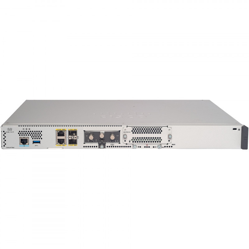 "Cisco C8200-1N-4T. Networking standards: IEEE 802.1Q, IEEE 802.1ag, IEEE 802.3ah, Ethernet interface type: Gigabit Ethernet. Security algorithms: IPSec. Processor manufacturer: Intel, Internal storage capacity: 16 GB, Flash memory: 8000 MB. Product colour: Grey, Rack capacity: 1U. Power source type: AC, AC input voltage: 90 - 264 V"\n"Catalyst 8200 Series Edge Platforms provide secure, flexible, and scalable connectivity to cloud applications. Get industry-leading SD-WAN and cloud security to accelerate your transition to a secure access service edge (SASE) architecture.