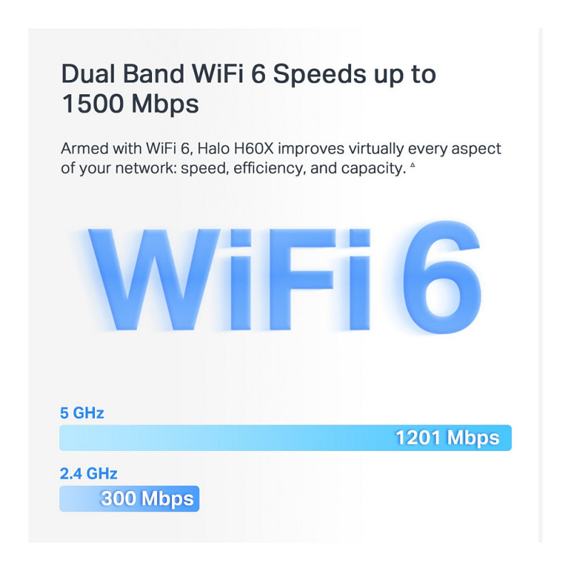 Armed with WiFi 6, Halo H60X improves virtually every aspect of your network: speed, efficiency, and capacity.