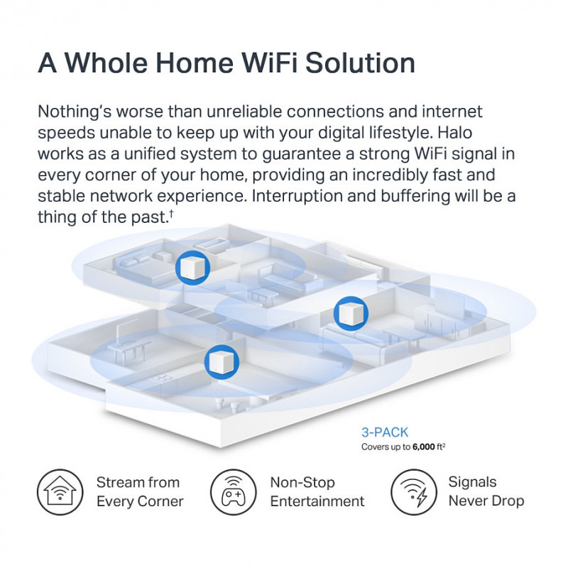 Nothing’s worse than unreliable connections and internet speeds unable to keep up with your digital lifestyle. Halo works as a unified system to guarantee a strong WiFi signal in every corner of your home, providing an incredibly fast and stable network experience. Interruption and buffering will be a thing of the past.