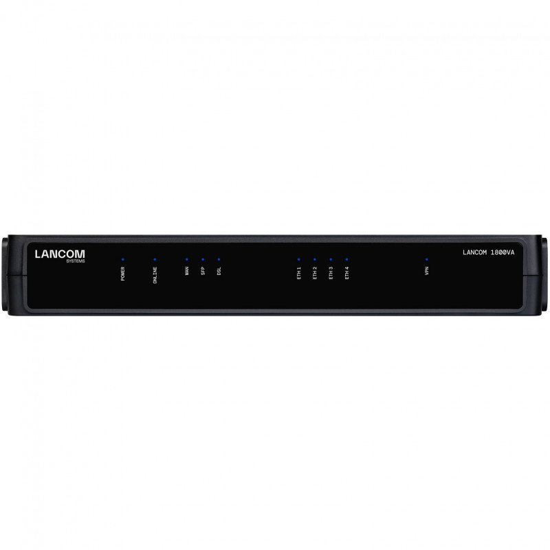 "LANCOM 1800VA (EU). Product colour: Black. Antenna type: External. Management protocols: SNMPv1,v2c,v3, Supported network protocols: Ethernet over GRE-Tunnel (EoGRE), L2TPv3, ARP-Lookup, LLDP, DHCP option 82,..., Routing protocols: BGP4, LISP, OSPFv2, RIP-2, VRRP. Ethernet LAN data rates: 10,100,1000 Mbit/s, Modulation: 256-QAM, 1024-QAM. Security algorithms: 802.1x RADIUS, 1024-bit RSA, 2048-bit RSA, 4096-bit RSA, AES-CCMP, AES-GCMP, EAP-FAST, EAP-GTC,..., Authentication method: PAP, CHAP, MS-CHAP, MS-CHAPv2"\n"SD-WAN gateway with VDSL