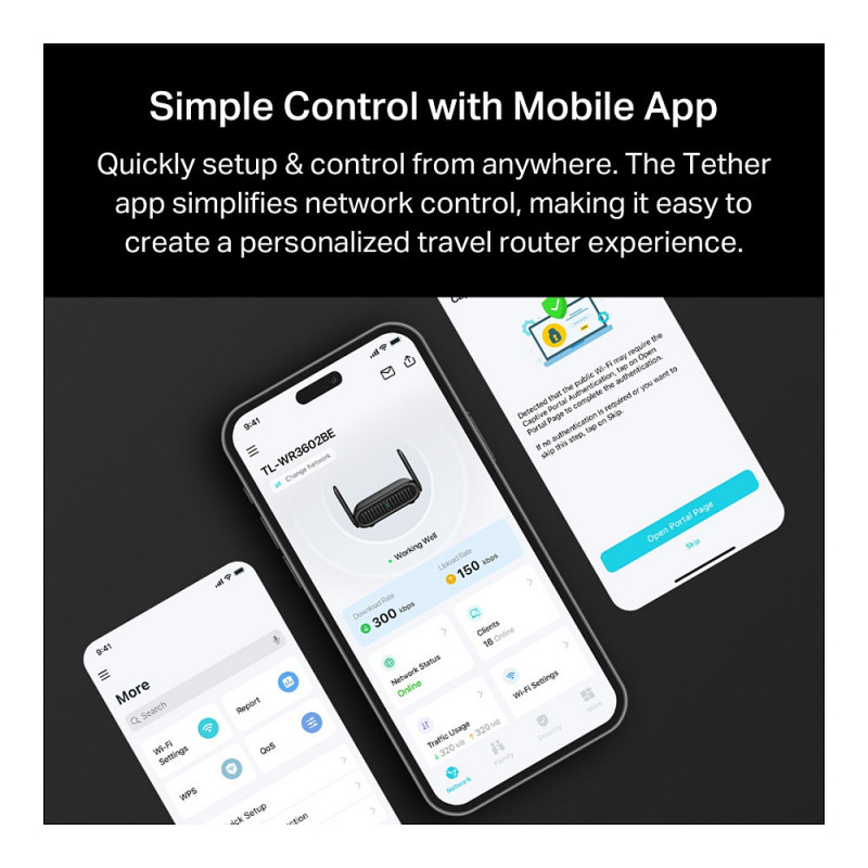 Quickly setup & control from anywhere. The Tether app simplifies network control, making it easy to create a personalized travel router experience."
